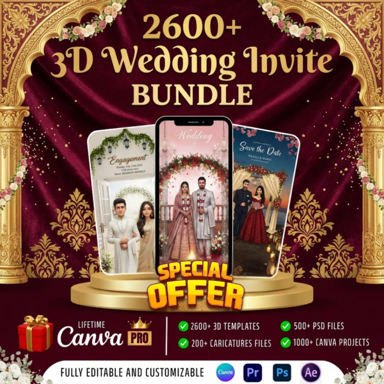 Get the Ultimate Wedding Invitation Bundle for only ₹199/- with Free Bonuses worth ₹45,000 + All 2D-3D Templates